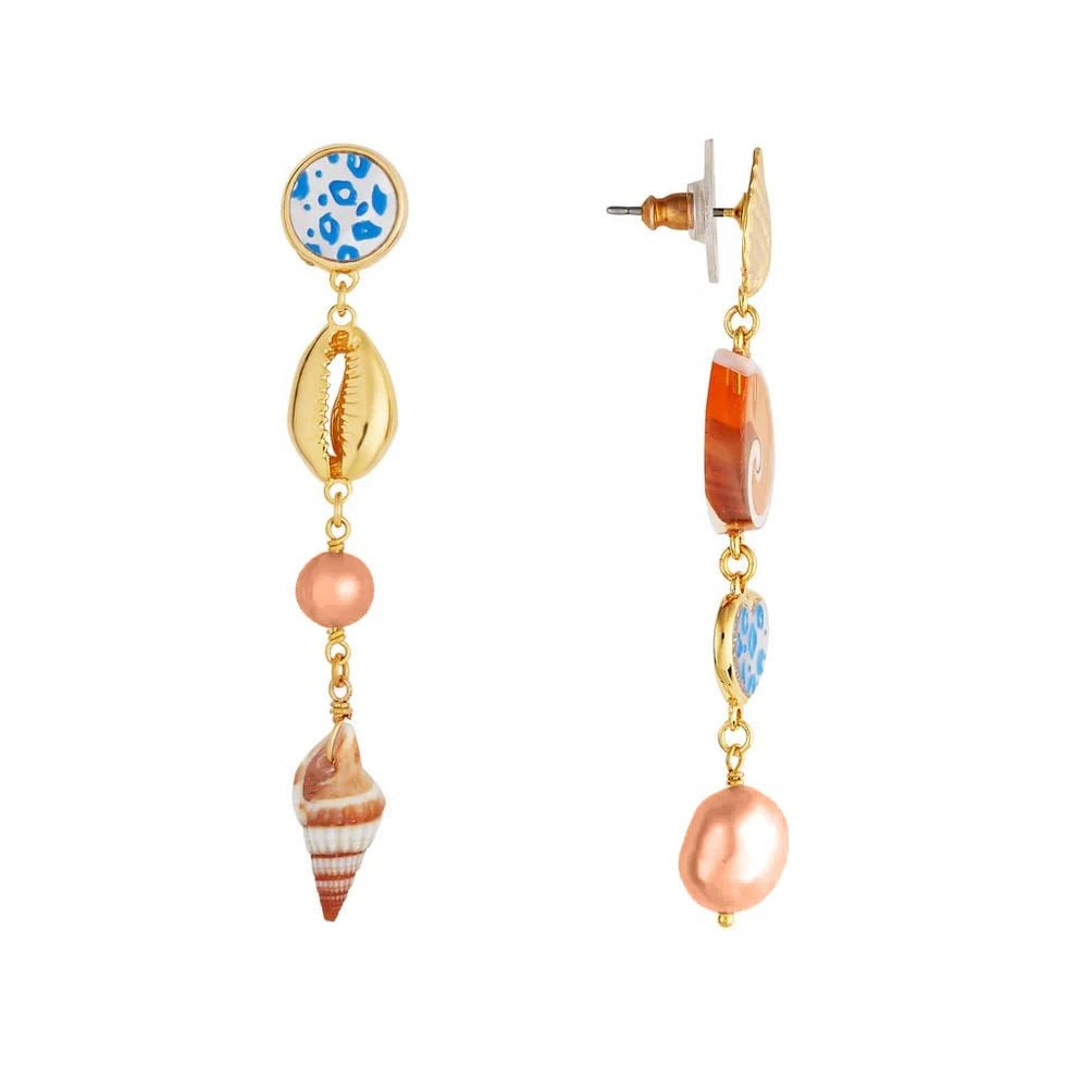 Kiehtovat merien moniväriset aarteet, helmet ja pienet simpukat koristavat näitä epäsymmetrisiä Les Néréides'n korvakoruja. Out at Sea -korukokoelma ammentaa inspiraationsa valtamerien kiehtovista ihmeistä. Näe lisää meriaiheisia koruja verkkokaupassamme.